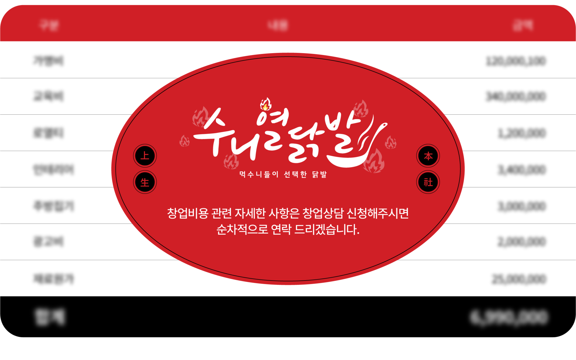 상호명 : 수니열닭발 대표자 : 김진우사업자등록번호 : 7622300693가맹상담 : 010-6877-0132