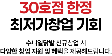 상호명 : 수니열닭발 대표자 : 김진우 사업자등록번호 : 7622300693 가맹상담 : 010-6877-0132